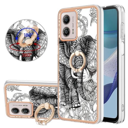 Caja de teléfono IMD doble cara galvanizada para Motorola Moto G53 G23 G13 con Soporte para anillo (Totem Elephant)