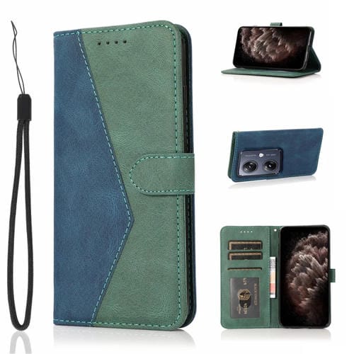 Funda de Cuero para Motorola Moto G54 5G con Costuras de Dos Colores (Azul Verde)