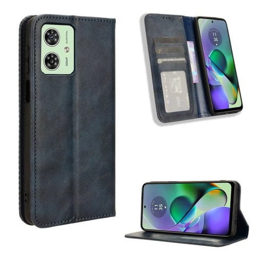 - 1x Funda para Motorola Moto G54 5G de Cuero con Textura Retro y Hebilla Magnética (Azul)