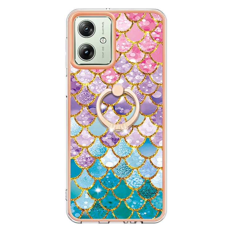 Funda TPU Imd con Galvanoplastia y Anillo para Motorola Moto G54 (Escamas de Colores)