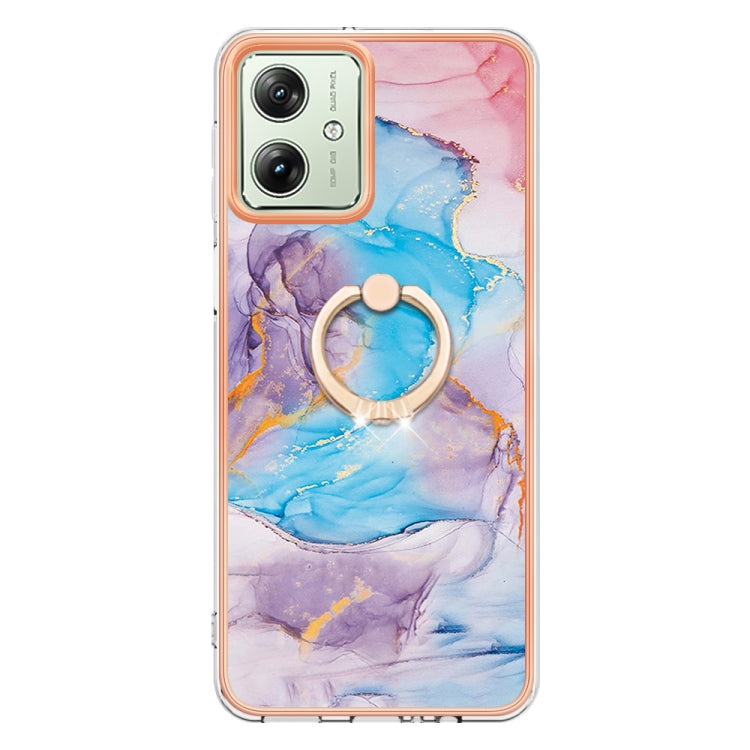 Funda para Motorola Moto G54 IMD TPU con Galvanoplastia y Anillo (Mármol Azul)