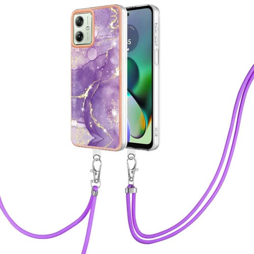 Estuche para Motorola Moto G54 Imd Doble Cara Mármol Galvanizado con Cordón (Púrpura)