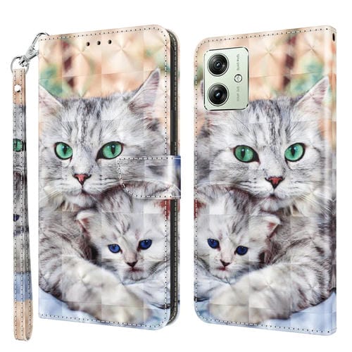 • 1x Funda de Cuero para Motorola Moto G54 Pintada en 3D Dos Gatos Amorosos