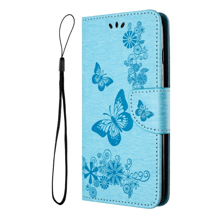 Funda de Cuero para Motorola Moto G54 con Tapa en Relieve de Mariposa (Azul)