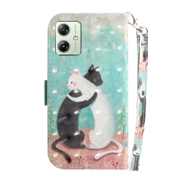 Funda de Cuero para Motorola Moto G54 con Tapa Horizontal 3D (Gato Blanco Negro)