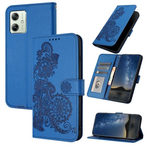 Funda de Cuero para Motorola Moto G54 Global Datura Flower con Tapa en Relieve (Azul)
