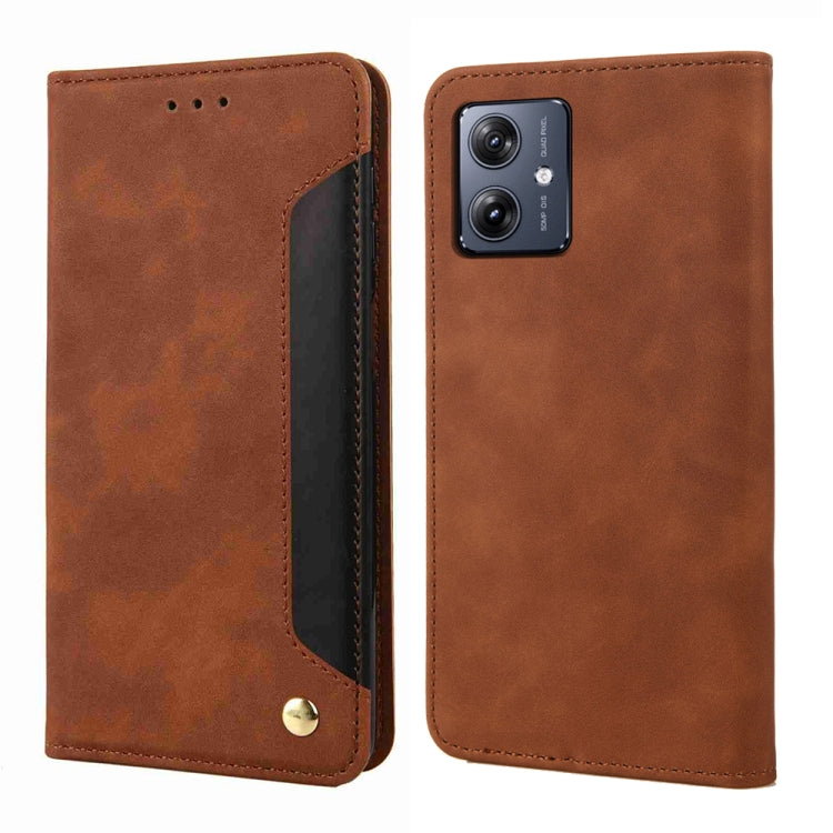 Funda de Cuero para Motorola Moto G54 Skin Feel Splicing para Teléfono (Marrón)