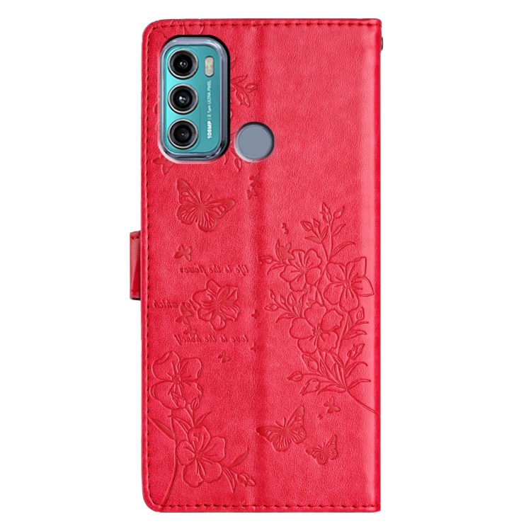 Funda de Cuero para Motorola Moto G60 4G con Mariposas y Flores (Rojo)