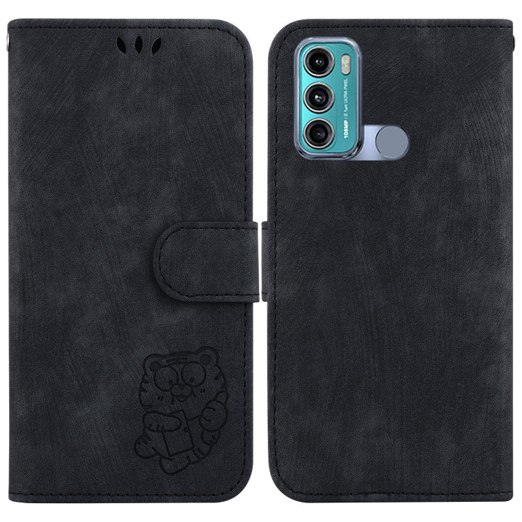 Funda de Cuero para Motorola Moto G60 y G40 Fusion Little Tiger en Relieve (Negro)