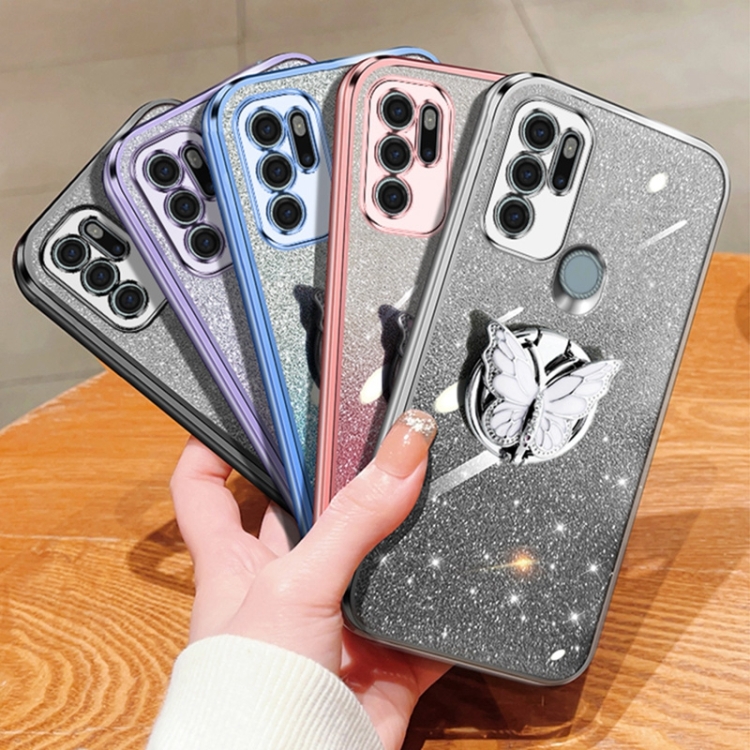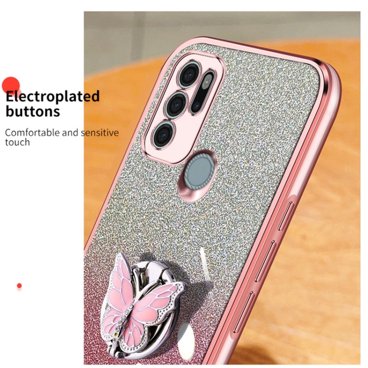 Funda para Motorola Moto G60S TPU con Soporte de Mariposa y Brillo Degradado (Negro)