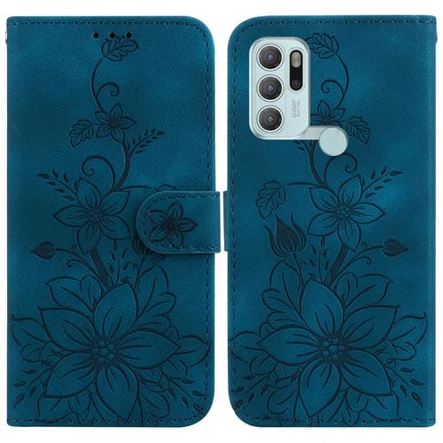 For Motorola Moto G60S Lily Embossed Leather Phone Case (Dark Blue)