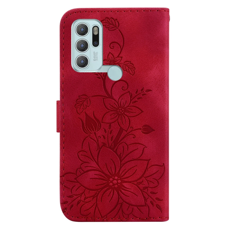 Funda para Motorola Moto G60S Lily de Cuero en Relieve (Rojo)