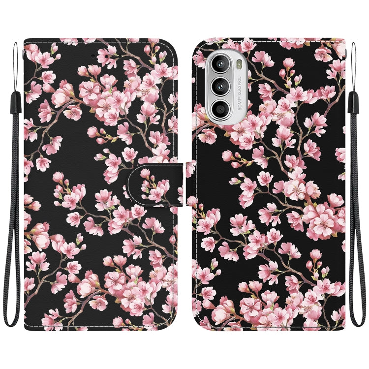 Funda de Cuero para Motorola Moto G62 5G con Dibujo Coloreado y Textura de Cristal (Flor de Ciruelo)