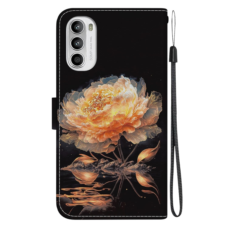 Funda de Cuero Motorola Moto G62 5G con Dibujo Coloreado y Textura de Cristal (Peonía Dorada)