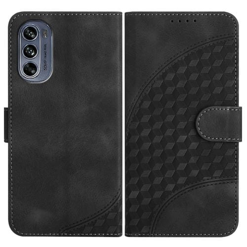 Funda de Cuero para Motorola Moto G62 5G Yx0060 con Relieve y Cabeza de Elefante con Cordón (Negro)