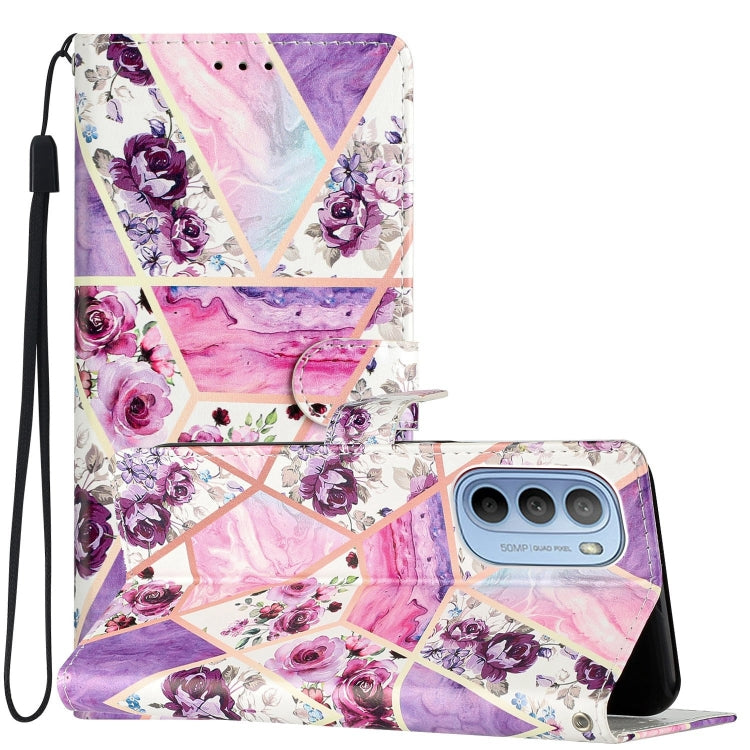 - 1x Estuche para Motorola Moto G62 de Cuero con Dibujo Coloreado Mármol Púrpura
