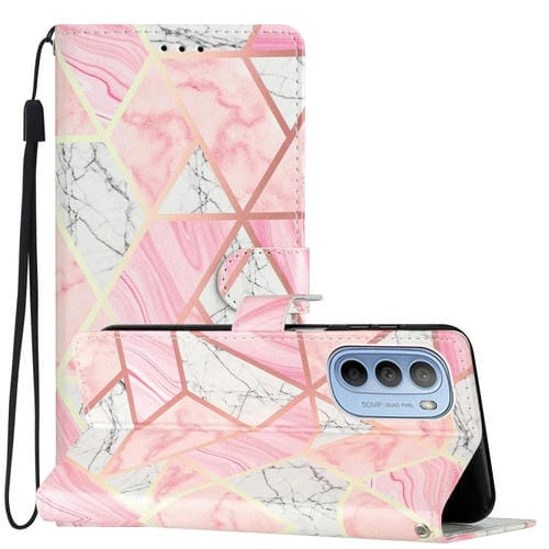 - 1x Estuche para Motorola Moto G62 de Cuero con Dibujo Coloreado Mármol Rosa