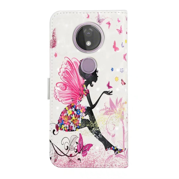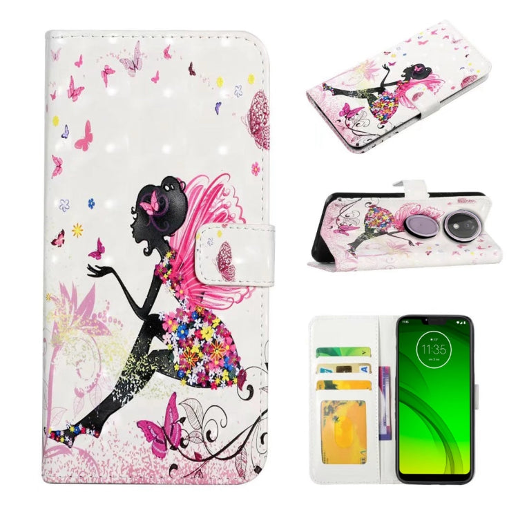 Funda de Cuero para Motorola Moto G7 Power con Dibujo 3D en Relieve (Hada de Flores)