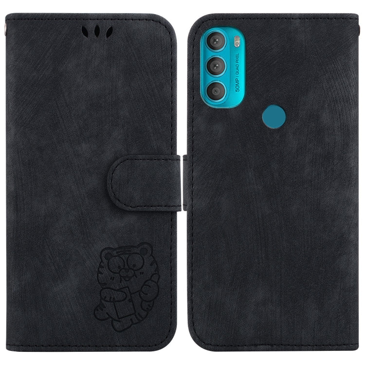 Funda de Cuero con Relieve Little Tiger para Motorola Moto G71 5G (Negro)