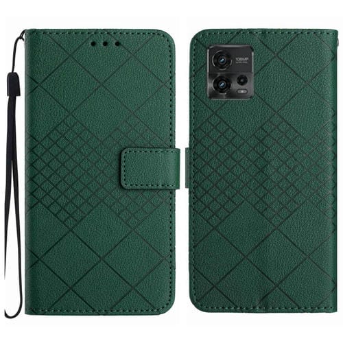 - 1x Funda de Cuero para Motorola Moto G72 4G con Textura de Rejilla Rómbica (Verde)