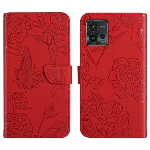 Funda de Cuero con Tapa en Relieve para Motorola Moto G72 4G Ht03 Skin Feel Butterfly (Rojo)