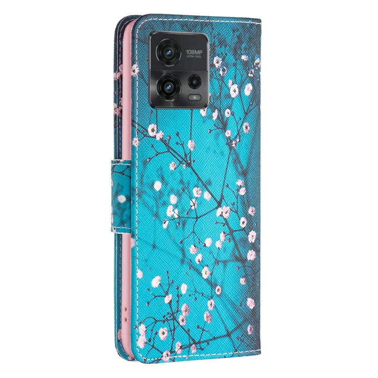 Para Motorola Moto G72 Estuche de teléfono de cuero con patrón de dibujo (flor del ciruelo)