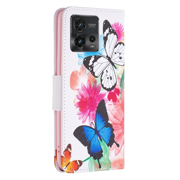 Para Motorola Moto G72 Estuche de teléfono de cuero con patrón de dibujo (mariposas)