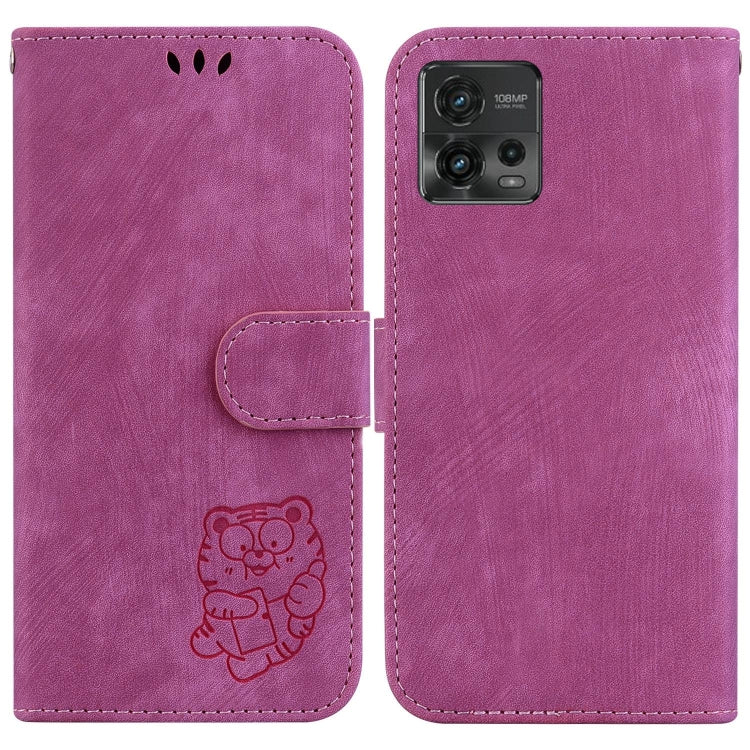 Funda de Cuero Motorola Moto G72 con Relieve Little Tiger (Rojo Rosa)