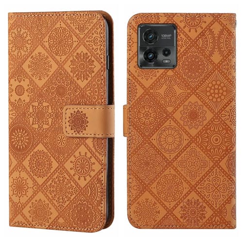 Funda de Cuero para Motorola Moto G72 con Patrón en Relieve Estilo Étnico (Marrón)