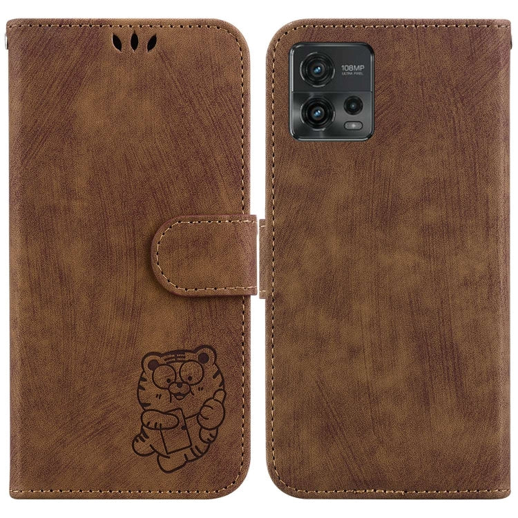 Funda para Teléfono Motorola Moto G72 de Cuero con Relieve Little Tiger (Marrón)