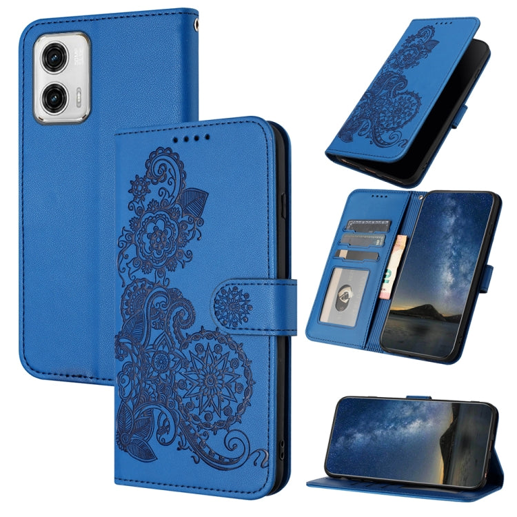 Funda de Cuero para Motorola Moto G73 Datura Flower con Tapa en Relieve (Azul)