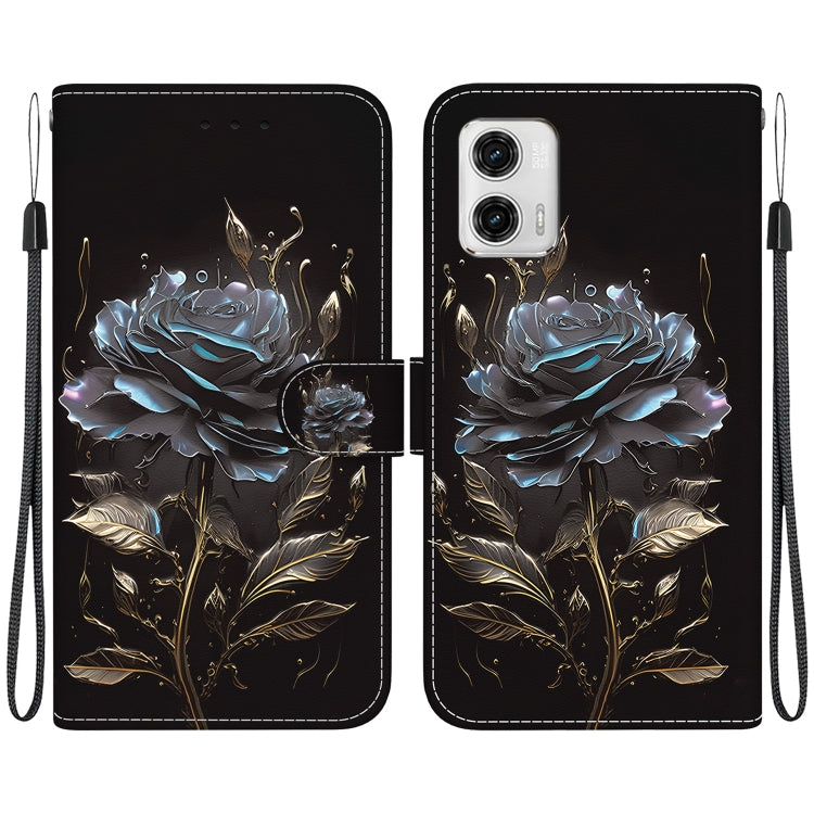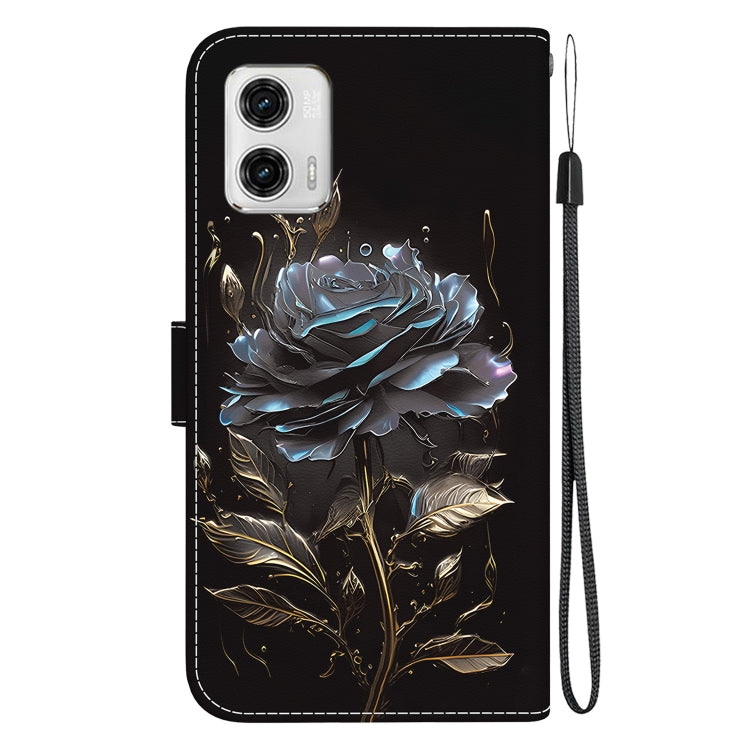 Estuche de Cuero para Motorola Moto G73 con Dibujo Coloreado y Textura de Cristal (Rosa Negra)
