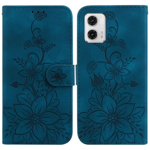Funda de Cuero para Motorola Moto G73 con Relieve Lily (Azul Oscuro)