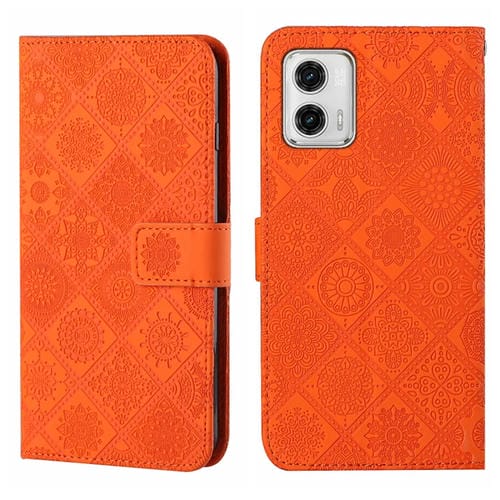Funda de Cuero para Motorola Moto G73 con Patrón en Relieve Estilo Étnico (Naranja)
