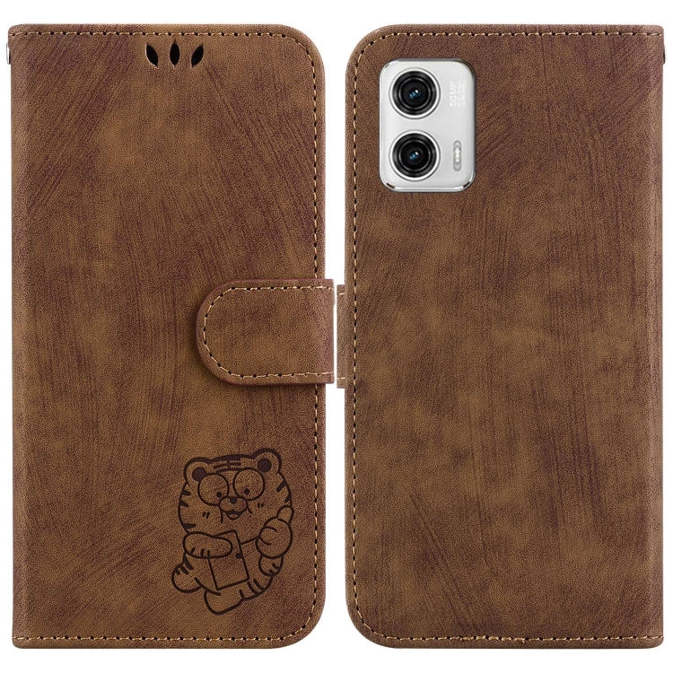 Funda de Cuero para Motorola Moto G73 Little Tiger en Relieve (Marrón)