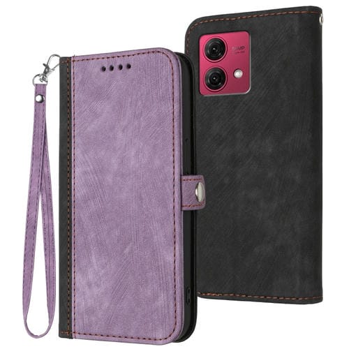 - 1x Funda de Cuero para Motorola Moto G84 5G con Correa de Mano, Doble Pliegue y Hebilla Lateral (Púrpura)