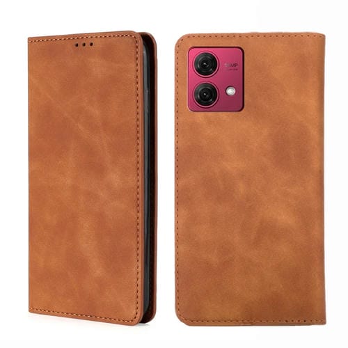 Funda de Cuero Magnética para Motorola Moto G84 5G Skin Feel (Marrón Claro)