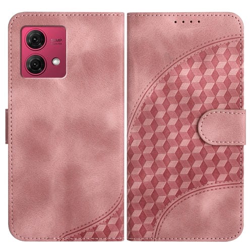 - 1x Funda de Cuero Motorola Moto G84 5G YX0060 con Relieve y Cabeza de Elefante con Cordón (Rosa)