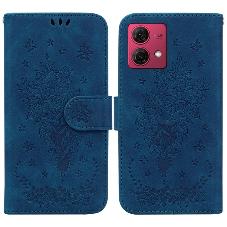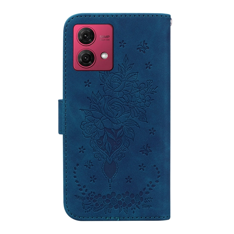 Funda de Cuero para Motorola Moto G84 Butterfly Rose en Relieve (Azul)