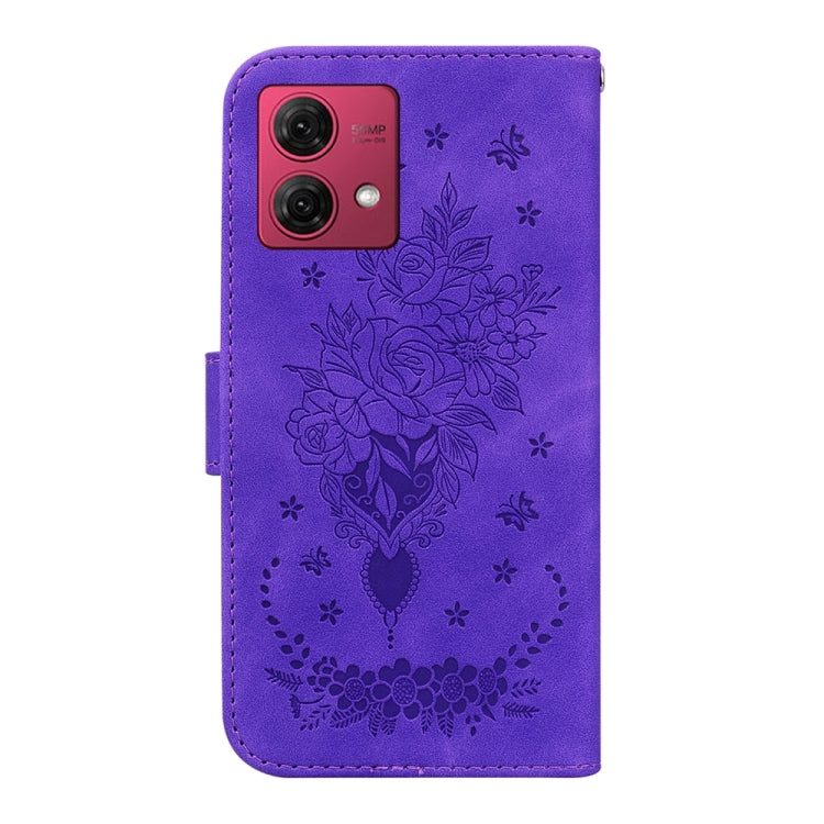 Funda de Cuero para Motorola Moto G84 Butterfly Rose en Relieve (Púrpura)