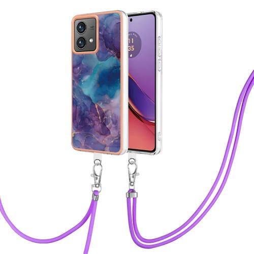 Estuche para Motorola Moto G84 Imd Doble Cara Mármol Galvanizado con Cordón (Púrpura)