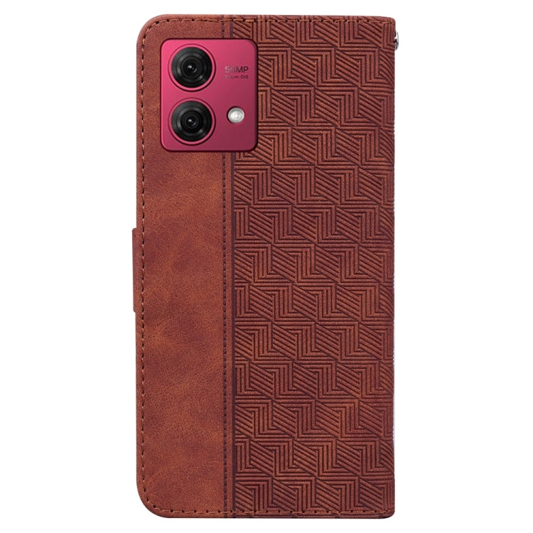 Funda de Cuero para Motorola Moto G84 con Relieve Geométrico (Marrón)