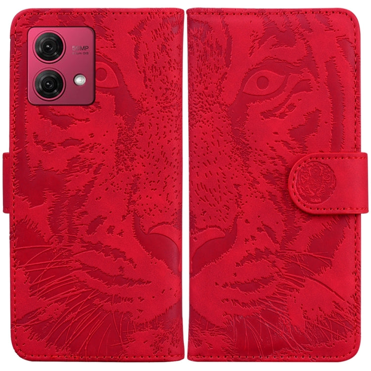 Funda de Cuero Motorola Moto G84 Tiger Embossed Pattern para Teléfono (Rojo)