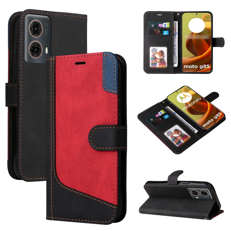 Funda de Teléfono Motorola Moto G85 Cuero con Empalme de Tres Colores (Negro)