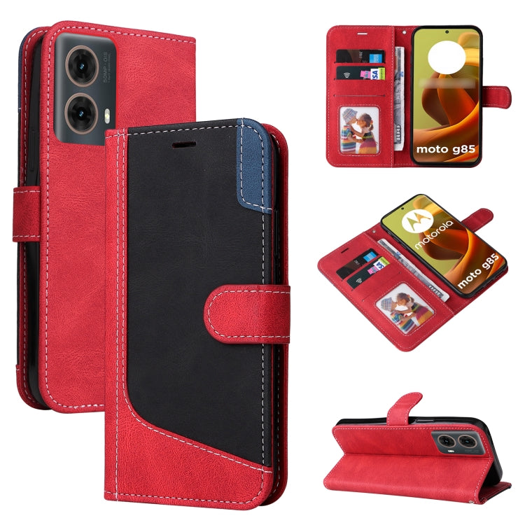Funda de Cuero para Motorola Moto G85 con Empalme de Tres Colores (Rojo)