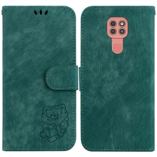 For Motorola Moto G9 Play / E7 Plus Little Tiger Embossed Leather Phone Case (Green)