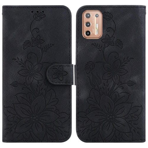 For Motorola Moto G9 Plus Lily Embossed Leather Case (Black)