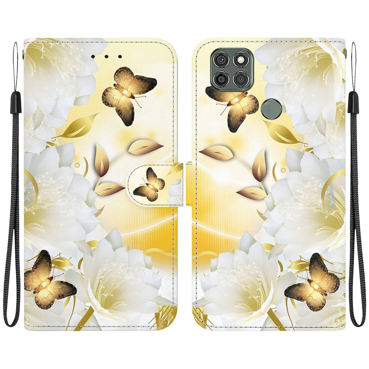 Funda de Cuero para Motorola Moto G9 Power con Dibujo Coloreado Epiphyllum Mariposa Dorada