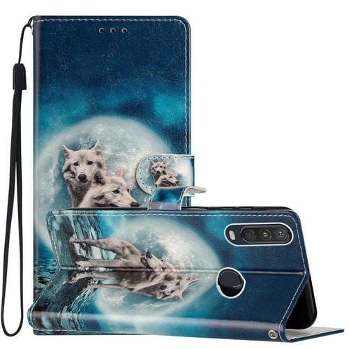 Funda de Cuero para Motorola Moto One Action con Dibujo Coloreado (Twin Wolves)