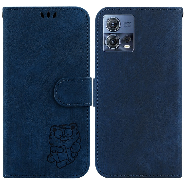 Funda para Motorola Moto S30 Pro 5G de Cuero con Relieve Little Tiger (Azul Oscuro)